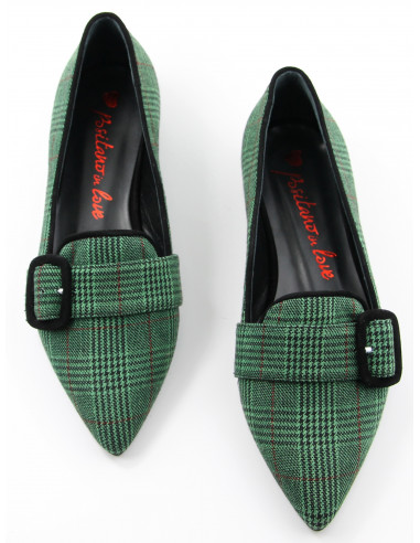 Ballerina in tessuto prince con fibbia rivestita fodera pelle suola in gomma antiscivolo tacco 15mm rivestito