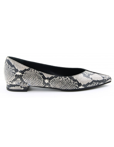 Ballerina in capretto scamosciato e pitone stampato fodera pelle suola in gomma antiscivolo tacco 15mm rivestito