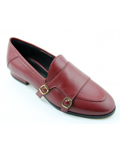 Mocassino artigianale con tomaia in vitello nappato fodera in pelle suola in cuoio tacco 15mm rivestito