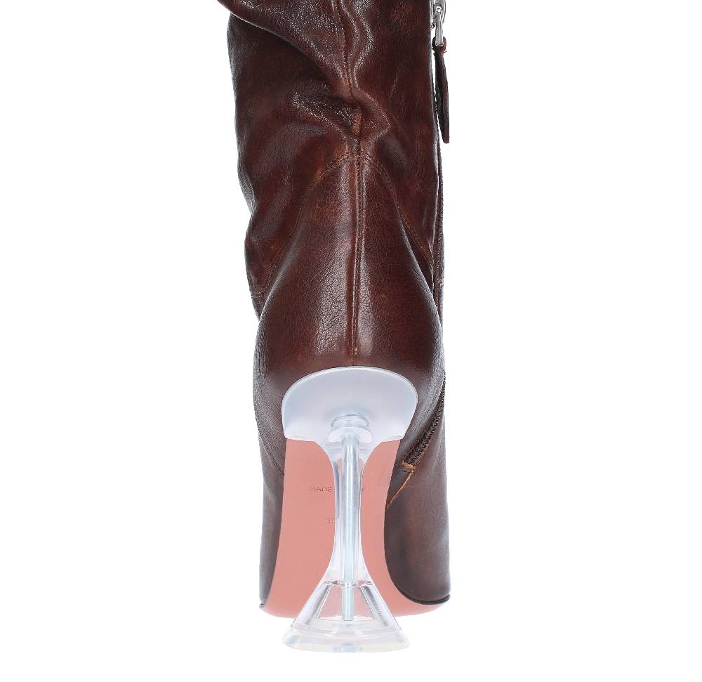Cuissard Oliviaglass in pelle. Suola esterna in gomma e cuoio. Suola interna in pelle. Tacco in plexiglass. Cerniera interna.